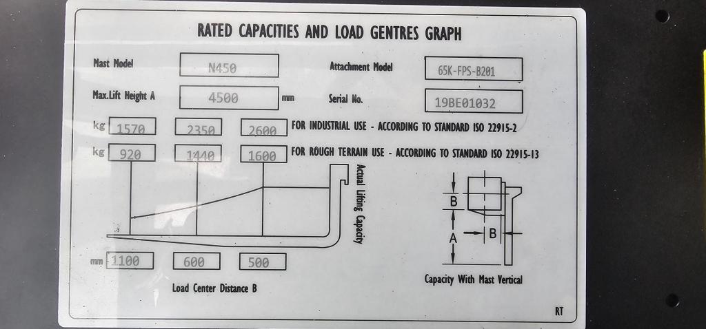 | Extra's | Cabine met kachel, sideshift/vorkversteller |
